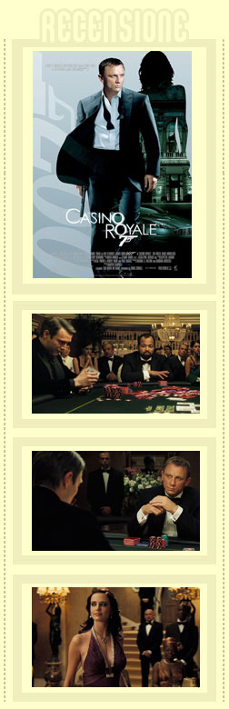 Casino Royale recensione] - Ladies and Gentleman, è arrivato 007. Quello vero, brutto, sporco e cattivo. Quello di Fleming, un po' working class e gretto, ma anche raffinatamente aristocratico, una faccia da poker, in tutti i sensi. Daniel Craig in questo Casino Royale si prende una grande soddisfazione verso fans e addetti ai lavori che lo insultavano. Troppo irregolare e proletario per prendere il posto di Sean Connery e Pierce Brosnan, dicevano. Verissimo, con i due ha proprio poco che vedere. Per questo è il miglior agente segreto di Sua Maestà visto finora al cinema. Torniamo alle origini, con il primo racconto della saga dell'uomo in smoking, figlio di Sir Ian Fleming. Quasi quarant'anni dopo l'originale semiparodistico con ben 5 registi (tra cui John Huston) e con David Niven, Peter Sellers, Ursula Andress e persino Orson Welles nella parte del temibile Le Chiffre, il cattivo di sorta. Pessimo servizio per James Bond – nonostante la collaborazione alla sceneggiatura, in incognito, di Woody Allen e Billy Wilder- a cui il film di Martin Campbell- già al lavoro sull'uomo in nero in altre due occasioni- rende giustizia. Scopriamo le origini di James, delle "sue" donne fondamentali, il motivo per cui diventerà misogino e soprattutto l'agente più disincantato, cinico e impenitente dell'emisfero occidentale. Sbaglia Bond qui. Lo fa subito, in una scena iniziale d'azione infinita e rumorosa. Sanguina, è tumefatto, si fa prendere dalle emozioni. Passi per la sua Vesper Lynd, quell'Eva Green che Bertolucci definì "di indecente bellezza", attrice straordinaria, che scongelerebbe la freddezza di chiunque. Ma persino nel poker con l'ottimo cattivo Mads Mikkelsen, il nostro è emotivo e umorale. Ci piace nel suo tormentato rapporto con le donne: M, quella sorniona e grandiosa Judi Dench che rimpiange la Guerra Fredda, Vesper, appunto, insieme alla moglie che perderà in futuro (ovvero…qualche decennio fa, potere dei remake), unica che gli strapperà il cuore. Infine la sensuale e tosta Caterina Murino -autodoppiatasi proprio in italiano in maniera poco convincente- qui Solange, la sua prima vittima. Ci piacciono i suoi errori di valutazione. Il primo che gli varrà una semiclandestinità, il secondo che gli farà giocare il budget delle Finanze inglesi in una sola mano di poker (al