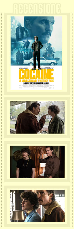 Cocaine – La vera storia di White Boy Rick vuole indagare su un fatto di cronaca realmente accaduto che ha segnato la storia recente del Michigan. In un periodo di declino, la città di Detroit era una distesa di fabbriche abbandonate o chiuse, dove in alcuni quartieri regnava la malavita, tra spaccio, gang rivali e impossibilità a guadagnare sufficientemente bene per vivere e dare ai figli una vita degna di questo nome. Ed è proprio in questo degrado che vive Rick, che per provare a dare una svolta alle sue giornate buie e monotone, entra in un tunnel dal quale gli sarà difficile, se non impossibile, uscirne. Il regista Yann Demange, con scelte precise e non scontate, cerca di porre l'attenzione sia sul mondo della droga che sulle famiglie disfunzionali, dove ha un ruolo marginale anche la sorella tossicodipendente, che bene o male accompagna il ragazzo in tutte le tappe principali che hanno condizionato la sua vita. E in questo anche Matthew McConaughey offre un'interpretazione intensa e non sopra le righe, seppur il personaggio non sia così ben caratterizzato. Nel cast, poi, troviamo anche Jennifer Jason Leight nei panni dell'agente FBI che contribuisce a indirizzare, malamente, la vita di Rick. Demange, quindi, cerca di fornire un quadro piuttosto esaustivo dei tre anni che hanno contribuito ad avere il più giovane informatore dell'FBI e, di conseguenza, spacciatore condannato alla più lunga pena per fatti non violenti. Una storia che ha dell'incredibile, soprattutto visto il coinvolgimento della polizia e di un ragazzo che in condizioni estreme non ha potuto godere della propria adolescenza. Cocaine – La vera storia di White Boy Rick, quindi, è un film di genere che coinvolge principalmente per il susseguirsi di eventi e poi perché un ragazzo quattordicenne è stato vittima del potere e della droga, ma anche della legge che non ha avuto la forza di proteggerlo e indirizzarlo verso un futuro migliore, se non quello delle sbarre.