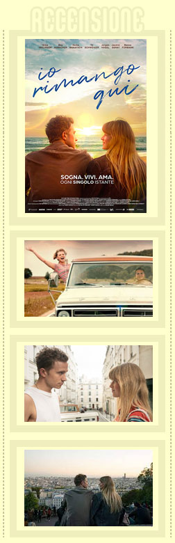 Io rimango qui recensione] - E' sempre una notizia che ti cambia il senso della vita. Steffi (Sinje Irslinger) è una ragazza solare, ha da poco compiuto sedici anni ed è in procinto di festeggiare il diploma liceale con l'attesa gita a Parigi con i compagni di classe, tra i quali c'è Fabian, il suo amore. Il sogno di Steffi è di entrare in polizia. Ma la visita medica preliminare non lascia scampo: alla ragazza viene diagnosticato un carcinoma bronchiale microcellulare, praticamente una sentenza di morte certa. Ed ecco che la vita stessa assume nuovi colori, nelle tinte del dolore e della disperazione e del rifiuto della notizia, soprattutto per i genitori della ragazza, Eva e Frank che vogliono che Steffi si sottoponga subito alla chemio. La forza di Steffi è dirompente. Non si lascia fermare dai divieti dei genitori di non partire e decide proprio di fuggire e raggiungere il suo Fabian a Parigi. C'è il pick-up che suo padre ha comprato proprio per lei in attesa che prenda la patente. La fatalità mette sul suo cammino Steve( Max Hubacher), il motociclista che ha conosciuto ad uno spettacolo circense. Steve sta attraversando un brutto momento e l'incontro con Steffi gli da una fulminea ragione di vita. Insieme partono per un viaggio on the road, a bordo del pick-up, con meta Parigi. Diretto da André Erkau e sceneggiato da Thomas Vass e Katja Kittendorf, "Io rimango qui", idea tratta dall'omonimo libro autobiografico di Frank Pape, è una storia di sopravvivenza alla morte vivendo intensamente momenti della vita stessa. Il dramma dell'improvvisa malattia viene scavalcato, Steffi sfida la morte con la vita che ha davanti e con la convinzione che tutto ciò che la vita ha di bello va conquistato con determinazione. André Erkau dirige un melodramma dalle tinte tenui, in cui l'idillio che man mano prende forma lungo il viaggio tra Steffi e Steve è l'ancora che accomuna entrambi al vero significato della vita, fatto di sensazioni, in un percorso di emancipazione e consapevolezza soggettiva per entrambi. Erkau resta ancorato ai codici del filone più melò che drammatico ed il racconto avventuroso scorre lineare nella forma di una commedia romantica, alternando al dramma di Steffi una considerevole leggerezza scenica. Il cineasta tedesco ha saputo mettere in scena il dramma di una notizia come il referto medico che annuncia la sentenza di morte, quasi vestendolo di disincanto, nei volti mai cupi di Steffi e Steve, quando godono nello sfidare il vento dall'alto di un dirupo e gioiscono bagnandosi nelle acque di un lago. Sicuramente "Io rimango qui" rimane fedele al dialogo cinematografico tra i due fuggitivi, mentre il montaggio evidenzia punti di lentezza scenica nei passaggi narrativi. In conclusione ciò che Erkau riesce ad evidenziare è il ruolo interattivo tra i due giovani protagonisti, su un bisogno incondizionato di complicità, per superare l'una la grande paura della morte e l'altro di riconciliarsi con la vita, dosando alla bene e meglio dramma ed ironia, ma evitando anche inutili pesanti patetismi.